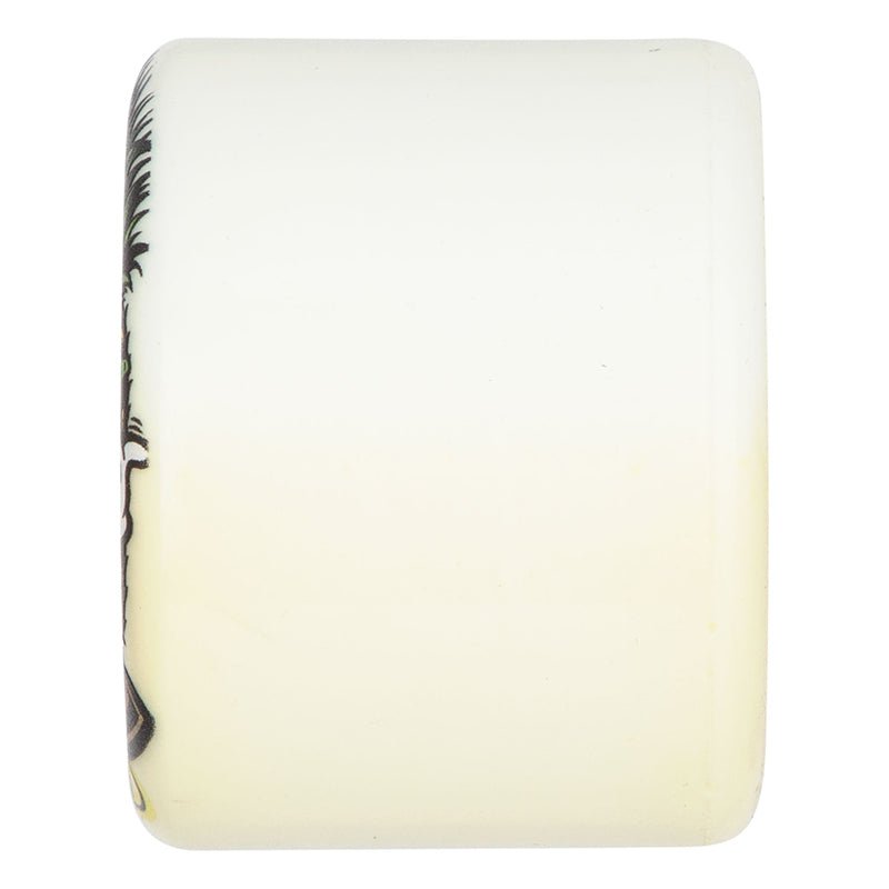 OJ Wheels 55mm, 78a Pina Colada Mini Super Juice wheels featuring yellow split dye fade with pineapple shaka graphics, green core and included pina colada air freshener.